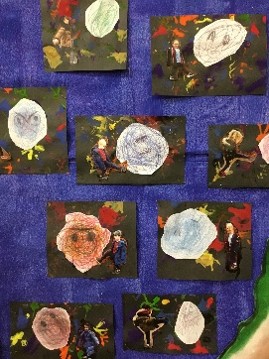 This was linked to our book Ruby’s Worry. We really like how Tom Percival illustrated Ruby’s worry, so we created an artwork based on his drawing. We drew our own worry and kicked it away.