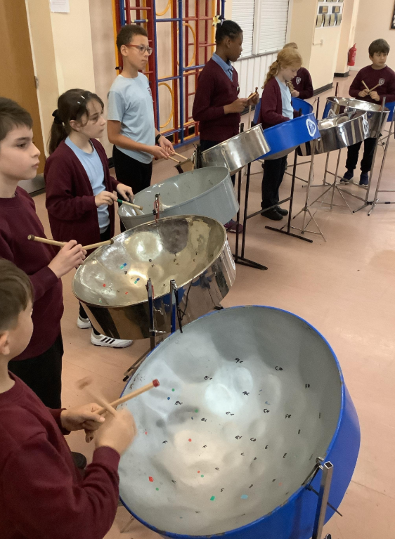 Highlight of the week 20/10/25: Year 5 ended their Black History Month celebrations on a high note with an exciting steel pans workshop. They played together as a band, learned new rhythms, and discovered the vibrant origins of Soca music from the Caribbean.