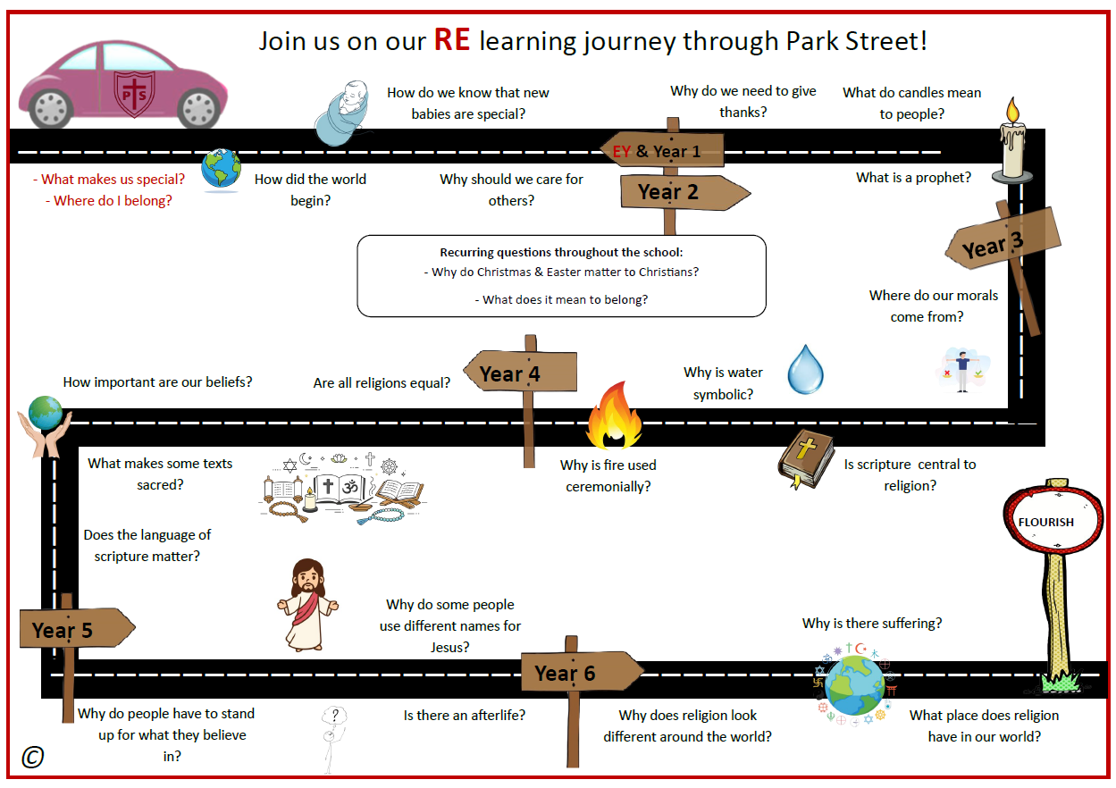 At Park Street, we recognise Religious Education as a means for helping children to explore the spiritual dimensions of life and to lay the foundations for an understanding of Christianity and other world faiths. It is an integral part of school life and is central to the ethos of our school.